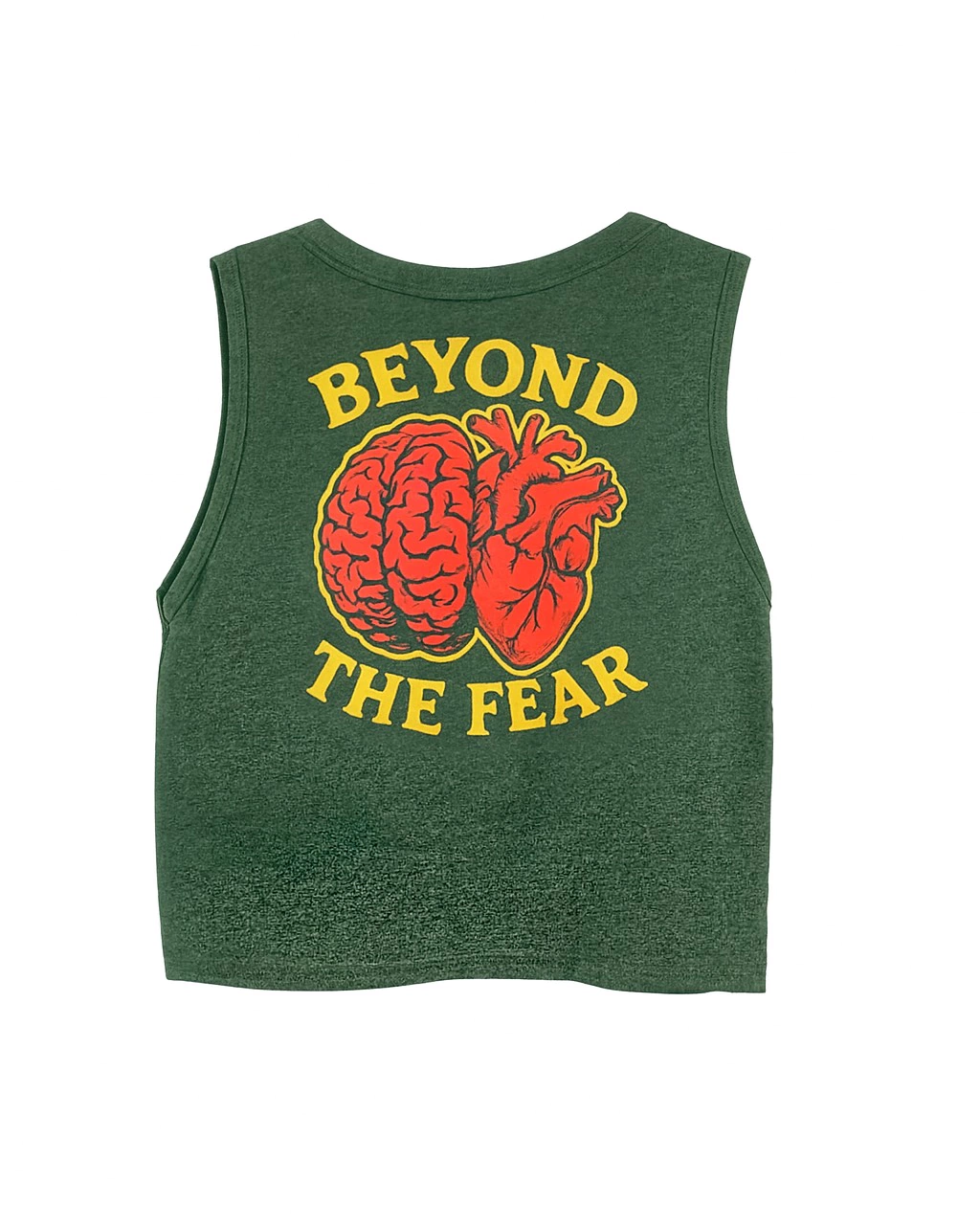Long top "beyond the fear". Color oliva. Tela jersey 24-1 Jaspeado. Talle estampado.