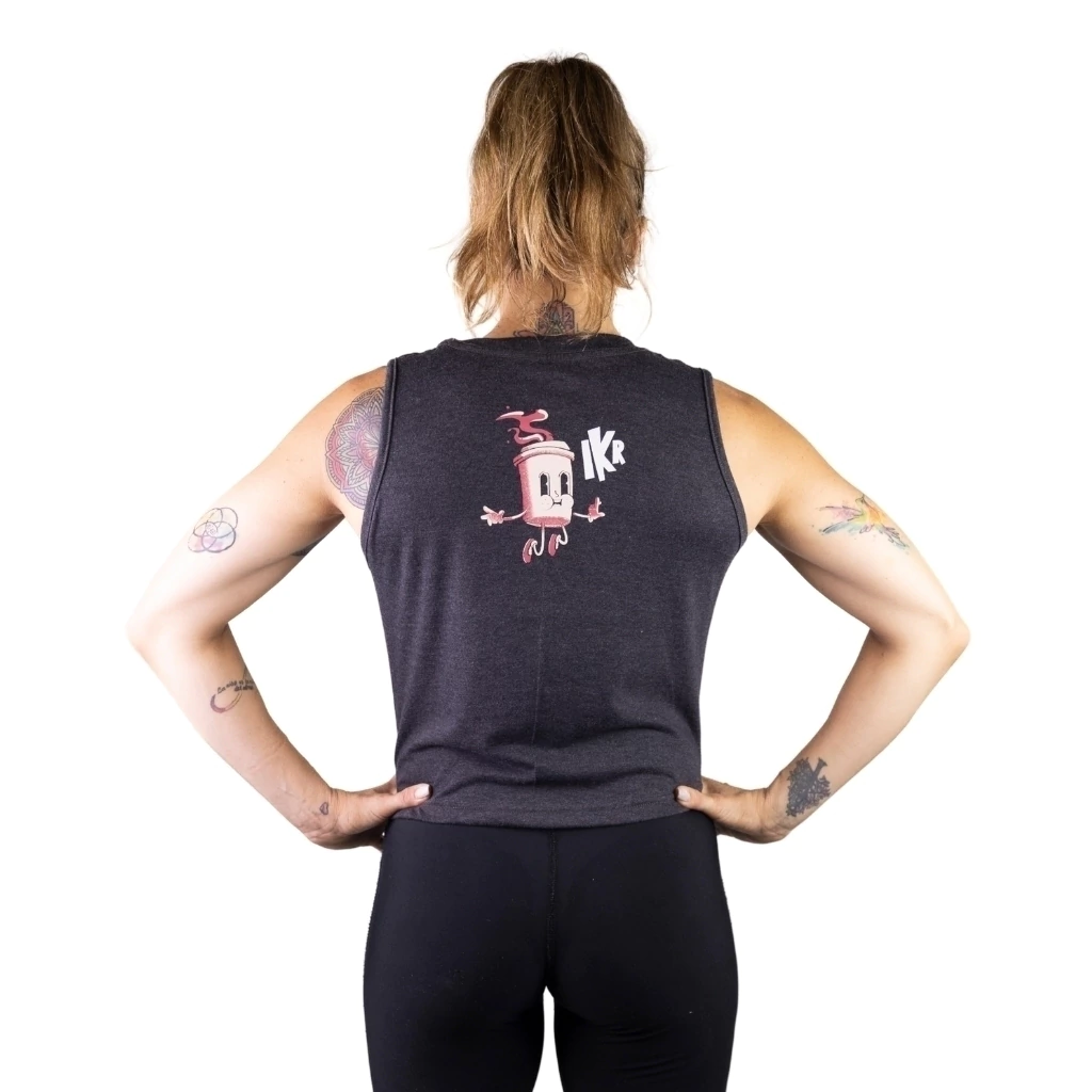 LongTop "endorphins & coffee". Color negro jaspeado. Tela jersey 24-1.